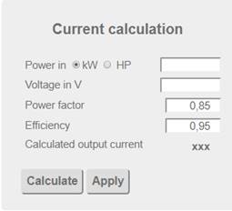motor current, power, voltage, Duty mode and ambient ambitions.